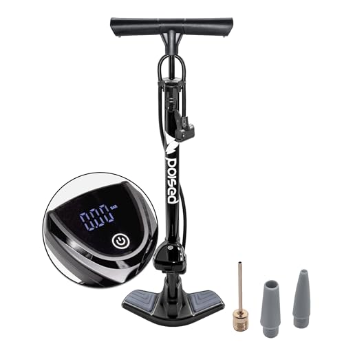 Poised Pompe à vélo sur pied pour toutes les valves AV, SV, DV - Pompe à air pour vélo avec manomètre numérique, adaptateurs et boîte de rangement intégrée - Pompe pour moto, vélo électrique, voiture