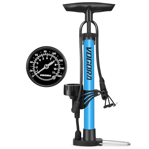 VOGORA Pompe a Velo a Pied avec Manometre, Mini Pompe à vélo Portable avec Valve Presta et Schrader, Haute Pression 160PSI pour Vélos, Voiture, VTT de Route et balles