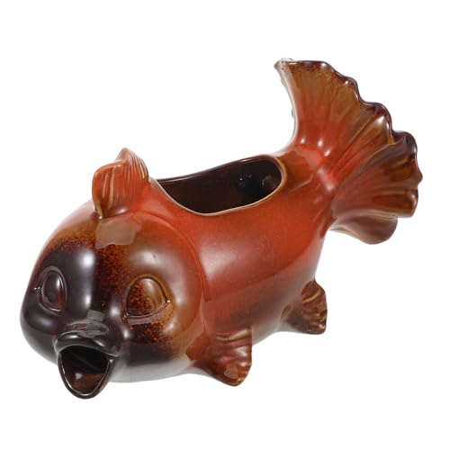 SEWOART Fontaine Céramique Poisson Compact Écoulement Naturel Système sans Pompe pour Bassin Extérieur et Patio