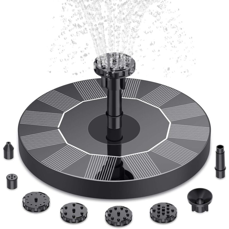 Fontaine solaire extérieure, pompe à eau solaire pour bassin avec 7 styles de fontaine, mini fontaine flottante avec panneau solaire pour bassin