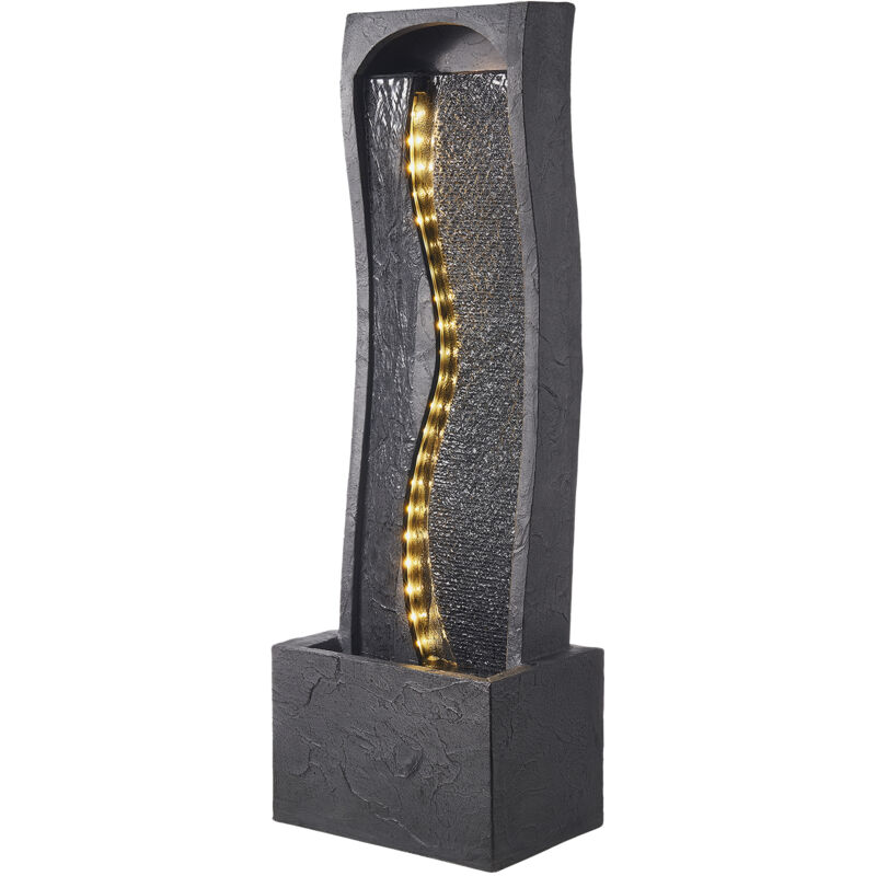 Fontaine jardin 25x24x50 cm avec LED, pompe à eau incluse, bassin décoratif, pour terrasse extérieure, résine imitation pierre - gris