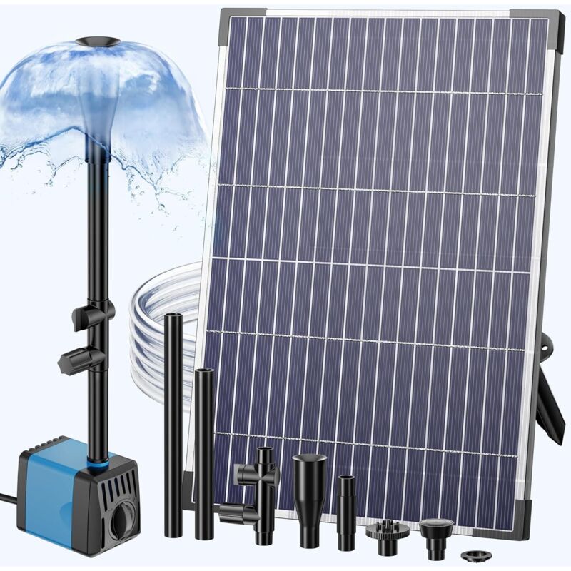 Amztime 20W Fontaine Solaire 2024 Nouveau Fontaine Solaire Exterieure de Jardin DIY Pompe Abreuvoir Oiseaux Exterieur pour Etangs, DIY Bains d'oiseaux, Piscine de Jardin et Bassin(20W)