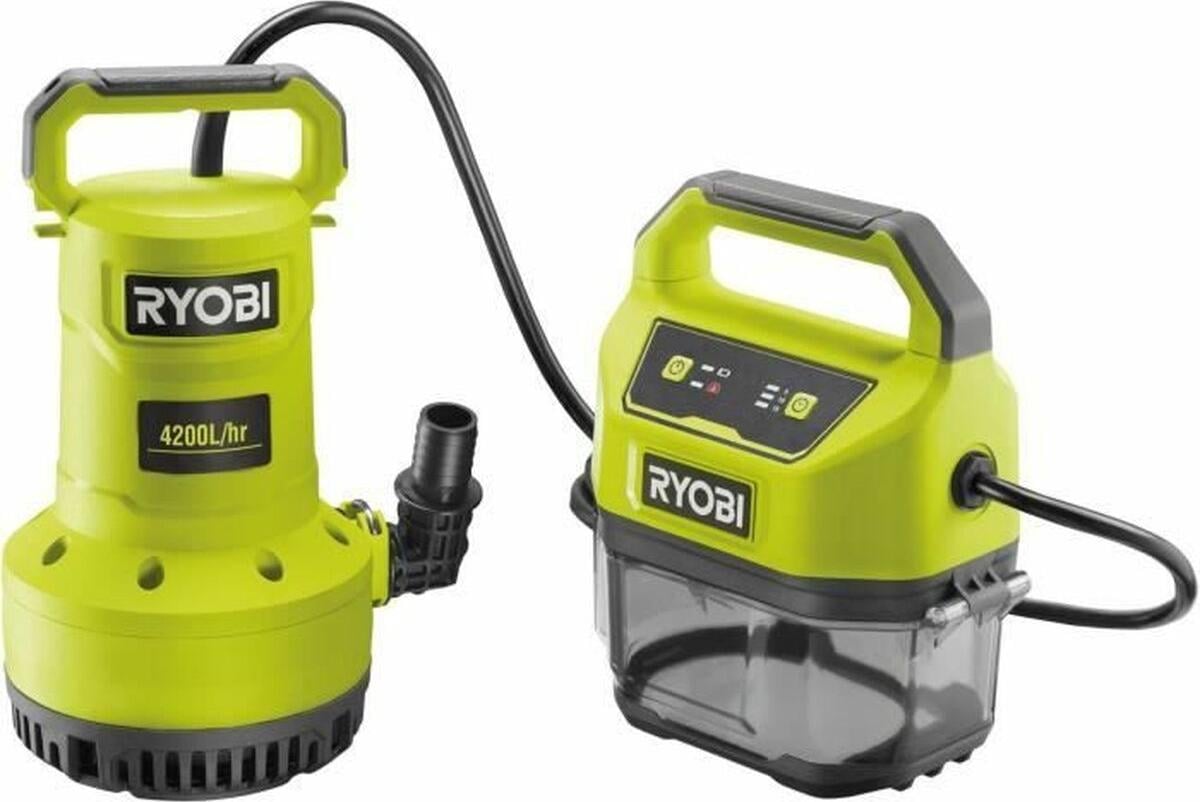 Ryobi - Pompe d'évacuation 18Volts ONE+ sans fils - 4 200 l/h - norme IPX7 - minuterie 3 réglages - vendue sans batterie ni chargeur - RY18SPA-0, Vert