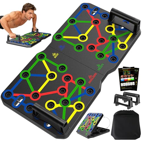 24 en 1 Planche Push Up, Pompe Musculation, Planche a Pompe Sport Pliable avec Poignées, 2 Corde de Tension, 20 Pads Adhésifs, Sac, Capacité Charge 150kg, Appareil Musculation Maison Entraînement