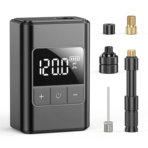 Pompe à vélo Portable, Mini Pompe à vélo électrique 120PSI avec Affichage numérique, valves Presta/Schrader, Arrêt Automatique