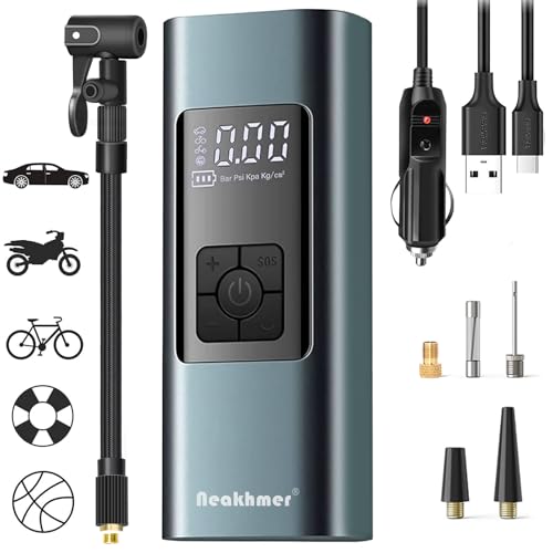 Gonfleur Pneus Voiture Compresseur Air: Mini Compresseur À Air Portatif 150PSI,6000mAh Pompe À Vélo Électrique 12V pour Voiture Vélo Et Moto