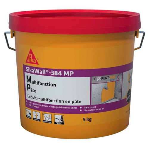 SIKA - Enduit multifonction en pâte 3 en 1 - SikaWall 384 MP Blanc - Prêt à l'emploi pour le garnissage/lissage/collage de bande à joints - Sec au toucher en 1h - Application et ponçage facile - 5kg