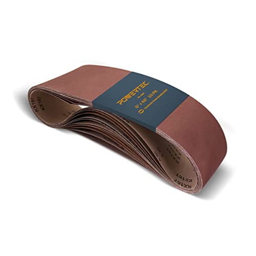 POWERTEC Lot de 10 bandes abrasives de 122 cm, grain 60, pour ponceuse à bande d'établi, ponçage du bois et de la peinture, polissage des métaux (110170V)