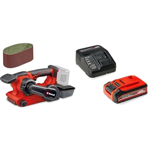 Einhell Professional Ponceuse à bande sans fil Einhell TP-BS 18/457 Li Power X-Change (18V, vitesse 250m/min, surface de ponçage 75x126mm, moteur sans charbon) avec Chargeur et Batterie 4,0Ah PLUS