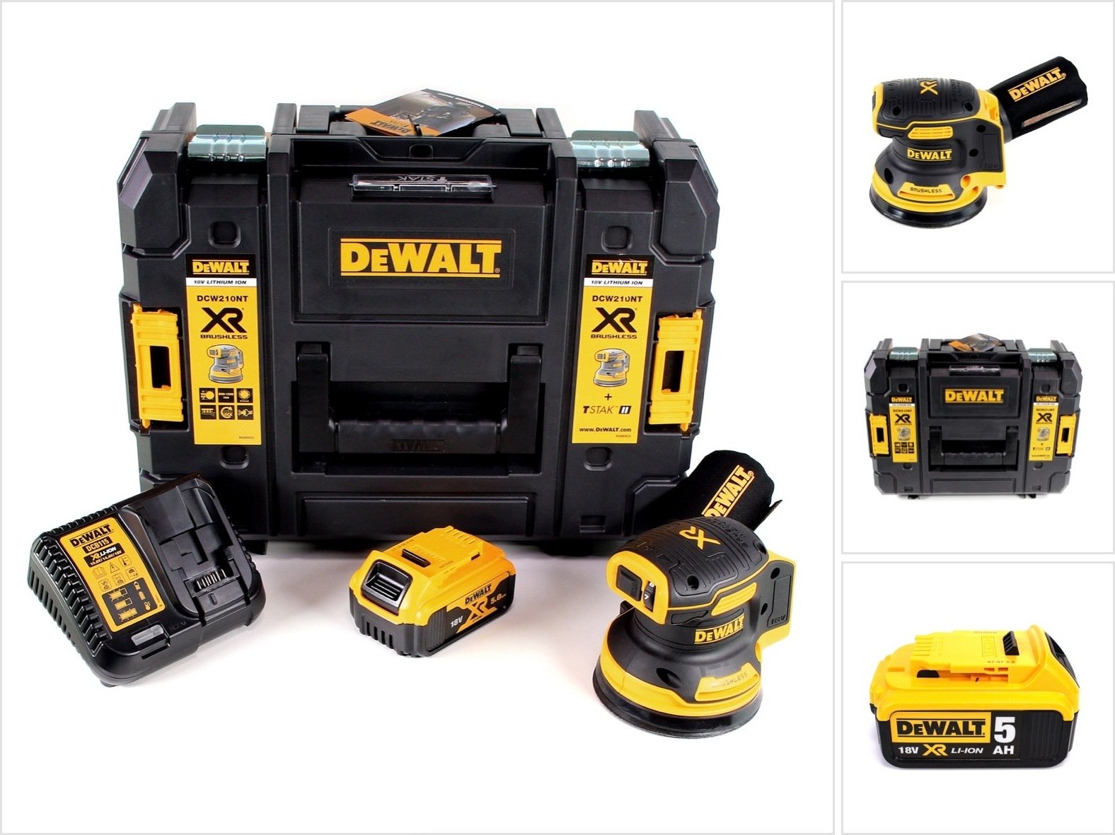 DeWalt DCW 210 P1 Ponceuse excentrique sans fil 18 V 125 mm Brushless + 1x batterie 5,0 Ah + chargeur