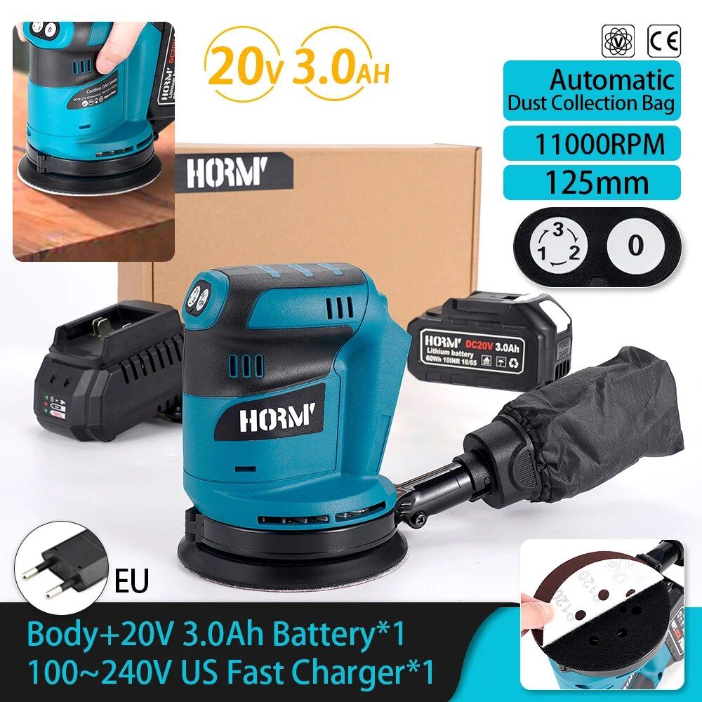 ponceuse électrique orbitale aléatoire,125mm,disque sans balais,3 vitesses,pour batterie Makita 18V