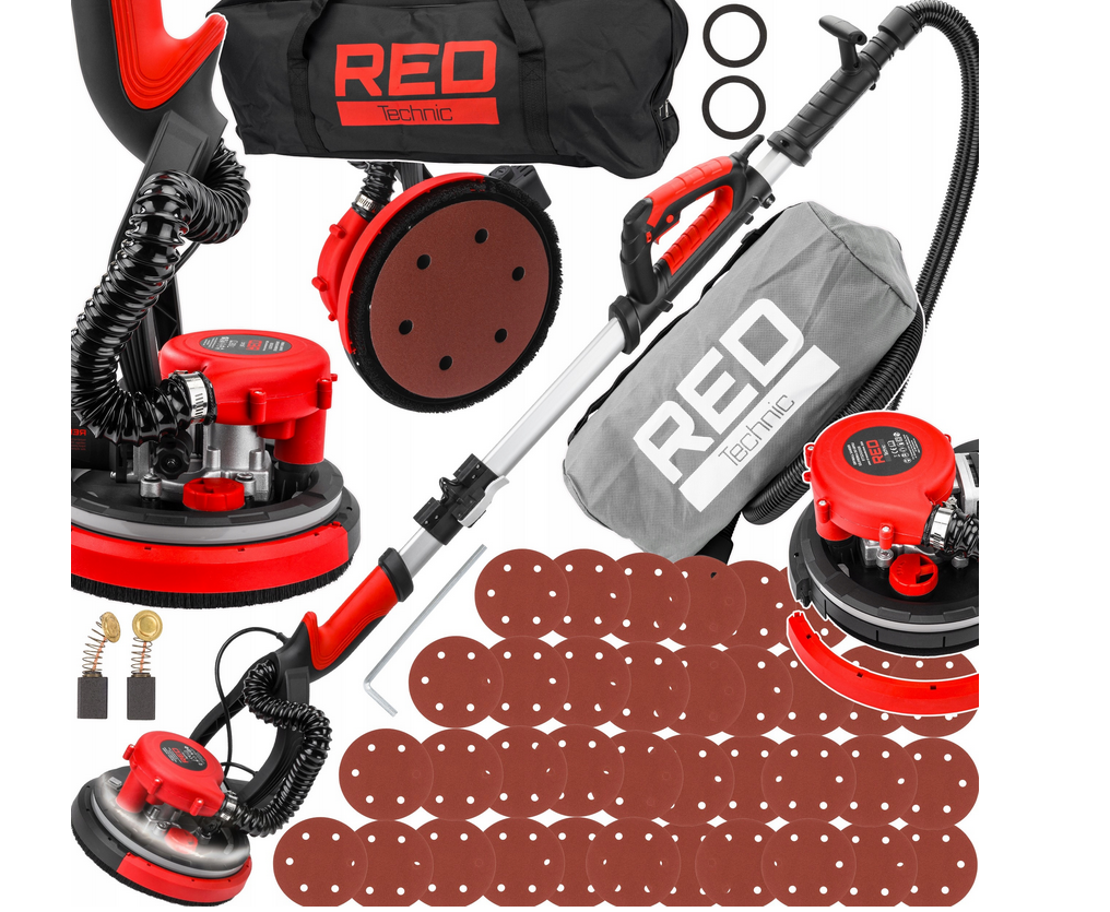 Ponceuse circulaire murale 900W - Mur et Plafond - 6 disques abrasifs 180mm - 5 vitesses - Eclairage LED - Sac de poussières