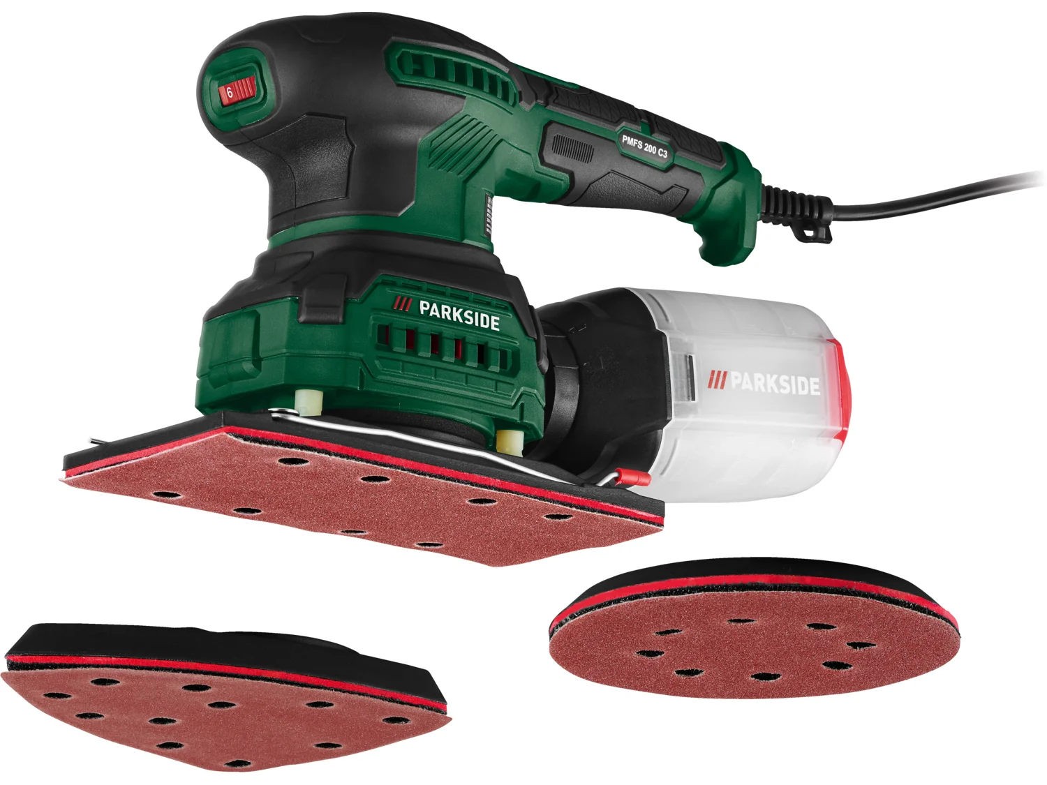 Parkside PMFS 200 C3 Ponceuse multifonction 3-en-1 : Ponceuse orbitale, roto-orbitale et delta + 3 plaques de ponçage échangeables