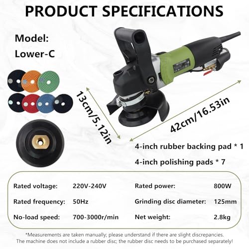 MAXXT Meuleuse d’angle pour béton, ponceuse-meuleuse avec plateau de 5 pouces, 1000–8500 tr/min, 7 vitesses réglables, protection amovible pour le polissage (inclut 2 disques diamantés)