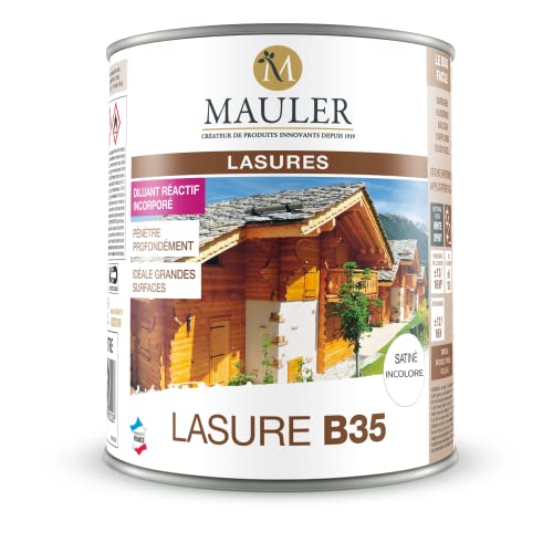 Lasure professionnelle pour bois extérieur - 5L Satiné Incolore - Protection UV et intempéries - Lasure B35 Mauler