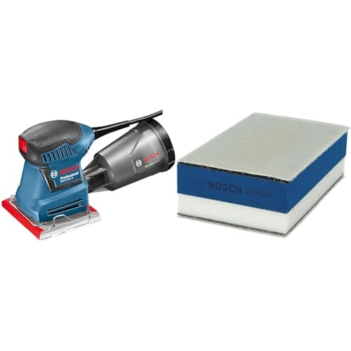 Bosch Professional Ponceuse vibrante GSS 140-1 A (180W, Régime à Vide : 12,000 tr/min, Mouvements orbitaux à Vide 24,000 osc/min, Pack d'accessoires, Boîte en Carton) + 1x Expert Cale Dual Density