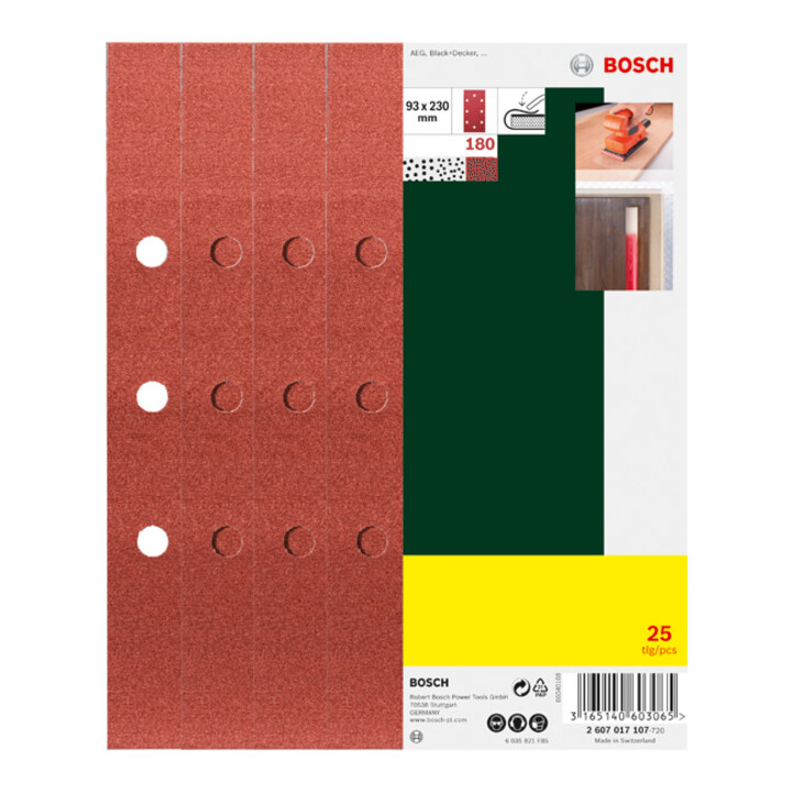 Bosch Accessories 2607017107 Set de 25 abrasifs pour Ponceuse vibrante 93 x 230 grain 180 perforés