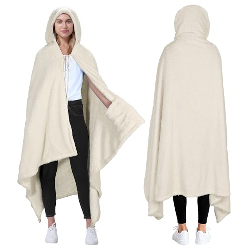 Catalonia Classy Couverture poncho en laine d'agneau pulvérisée avec capuche | Couverture portable avec poches latérales | Couverture à capuche confortable pour enfants et adultes