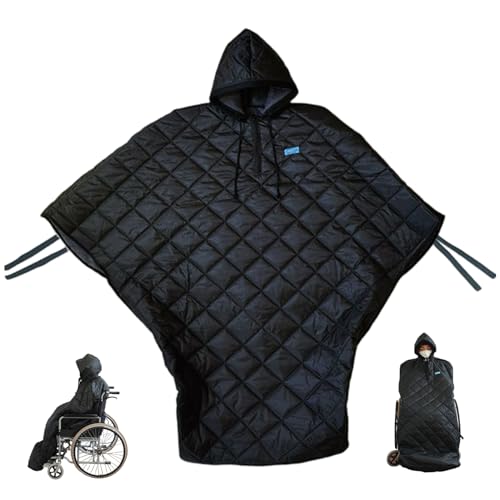 Joygoodta Couverture pour Fauteuil Roulant Chaude en Tissu doublé Polaire à Capuche pour Fauteuil Roulant, Poncho Coupe-Vent et imperméable pour Adultes, Hommes et Femmes, Hauteur inférieure à 170 cm