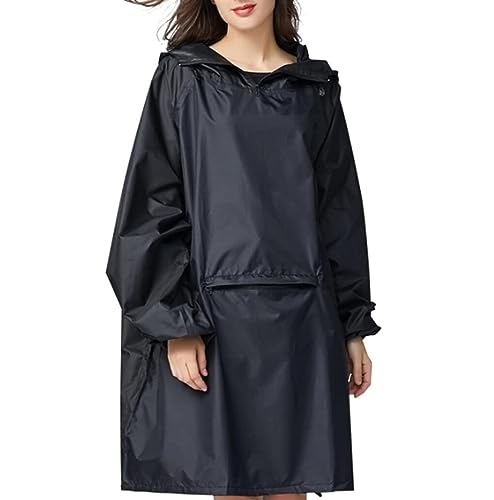 BOGAZY Veste Pluie Poncho De Pluie Long pour Femme, Imperméable avec Capuche, Fin pour Randonnée Manteau Imperméable(B,XXL)