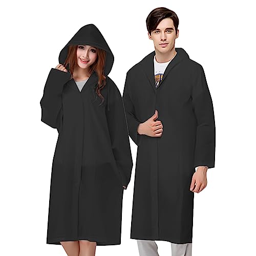 CMZYBBD Poncho Pluie Manteau De Pluie Transparent Eva pour Femme, Imperméable, Long Et Léger, avec Capuche, pour Voyage, Équitation, Extérieur-Noir-XL