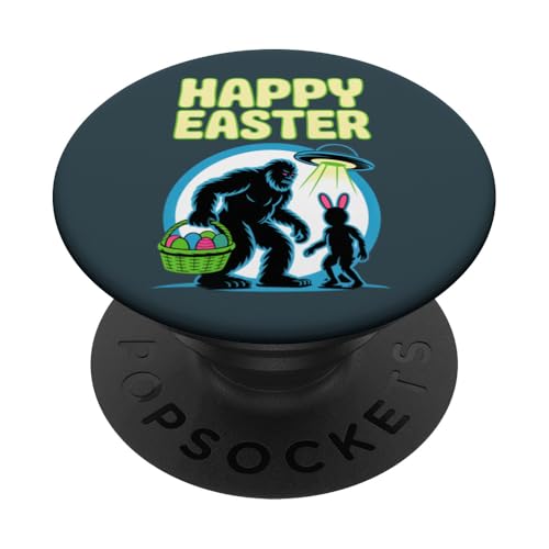 Joyeuses Pâques Bigfoot UFO Bunny Funny Easter Sasquatch Alien PopSockets PopGrip Adhésif