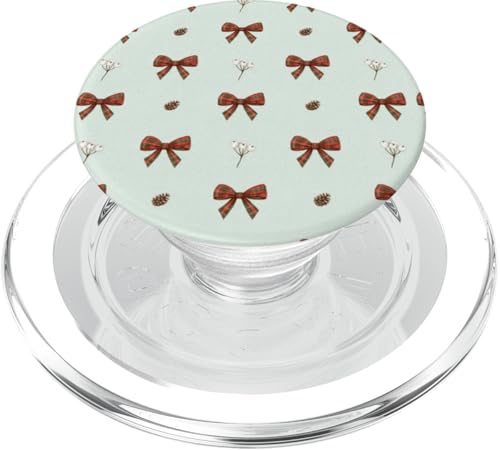 Noeuds Rouges de Vacances, Pommes de pin, Baies Blanches, Neige PopSockets PopGrip pour MagSafe