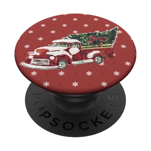 Sapin de Noël Rouge Camion Hiver Neige Rouge Blanc Noël Vintage PopSockets PopGrip Adhésif
