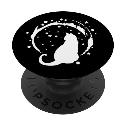 Chat d'hiver avec étoiles et Neige - Blanc PopSockets PopGrip Adhésif