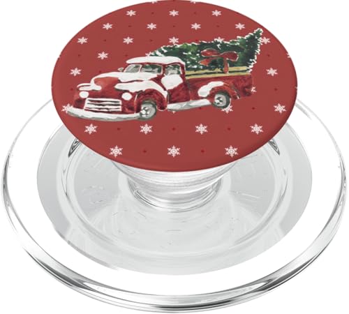 Sapin de Noël Rouge Camion Hiver Neige Rouge Blanc Noël Vintage PopSockets PopGrip pour MagSafe