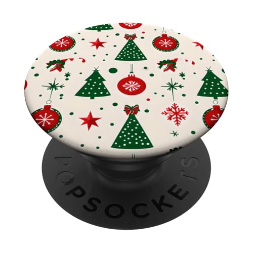 Sapins de Noël en Forme de Flocon de Neige Blanc Rouge Vert PopSockets PopGrip Adhésif