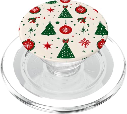 Arbres de Noël, Ornements, Flocons de Neige Rouge, Vert sur Blanc PopSockets PopGrip Adhésif