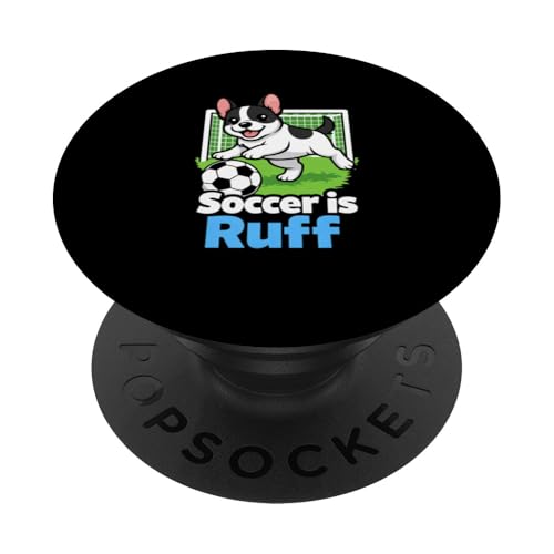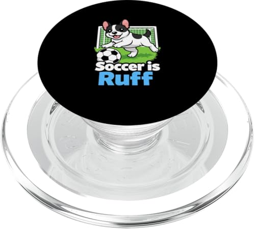Soccer is Ruff Bouledogue français Jouant à la Blague du Gardien de But de Football PopSockets PopGrip Adhésif