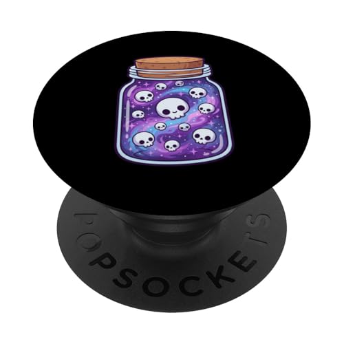 Crânes de la Galaxie Kawaii dans Un Bocal, Style Gothique Pastel, Halloween, Effrayant PopSockets PopGrip Adhésif