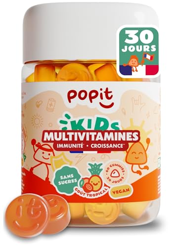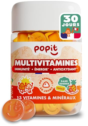 POP IT 60 Gummies Multivitamines Enfants dès 3 ans et Ados - Cure 1 Mois - Sans Sucres, Goût Tropical, Vegan - Vitamines Enfant avec Vitamine D Enfant, A, B, C, E - Gomme Vitamine Bonbon