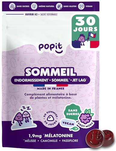 POP IT Gummies Sommeil Mélatonine 1,9mg - Endormissement Rapide - Complément Alimentaire Sommeil Adulte - Gummies Melatonine, Camomille et Mélisse - Vegan, Sans Sucres, Goût Mûre, Made in France - 30u