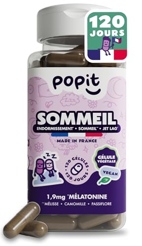 POP IT Mélatonine 1,9mg Endormissement Rapide - 120 Gélules Végétales pour 4 Mois - Fabriqué en France - Sommeil de Qualité grâce au Fort Dosage de Mélatonine 2mg par Gélule - Vegan Melatonin