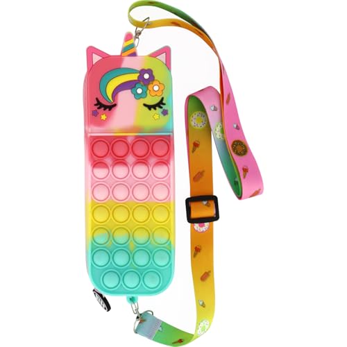 Grafoplás Étui en Silicone Pop It Licorne Bubbles | Bits and Bobs | 20 x 8 x 3,8 cm | Toucher Doux et Flexible | Sangle bandoulière réglable pour Enfants | 1 Compartiment, Fuchsia, Rose, Jaune et