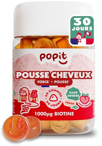 POP IT 60 Gummies Pousse Cheveux & Anti-Chute - Avec Biotine B8 1000 μg - Sans Sucres, Vegan - Pousse Cheveux très Rapide Femme et Homme - Bonbon Cheveux - Hair Gummies Cheveux