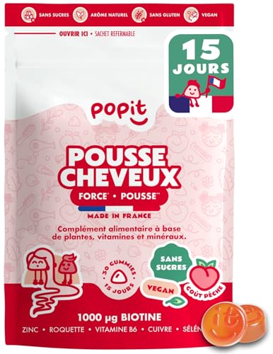 POP IT Gummies Pousse Cheveux et Ongles - Accélère la Croissance & Réduit la Chute - Complément Alimentaire Cheveux avec Biotine, Zinc & Sélénium - Vegan, Sans Sucres, Goût Pêche, Made in France - 30u