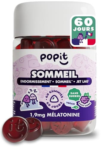 POP IT Gummies Sommeil Mélatonine 1,9mg - Endormissement Rapide - Complément Alimentaire Sommeil Adulte - Gummies Melatonine, Camomille et Mélisse - Vegan, Sans Sucres, Goût Mûre, Made in France - 60u