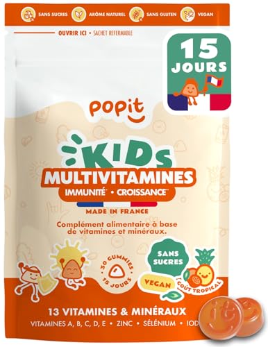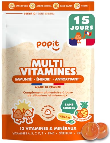 POP IT Gummies Multivitamines Enfants dès 4 ans et Ados - Cure 1 Mois - Sans Sucres, Goût Tropical, Vegan - Vitamines Enfant avec Vitamine D Enfant, A, B, C, E - Gomme Vitamine Bonbon - 30 unités