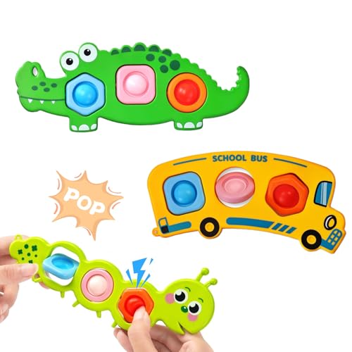 Afufu Jouets Sensoriels Pop It pour Bébé dès 10 Mois, Dinosaure, Bus Scolaire et Chenille, Jouet Montessori Motricité Fine, Anti-Stress, Jouets de Voyage pour Garçon Fille