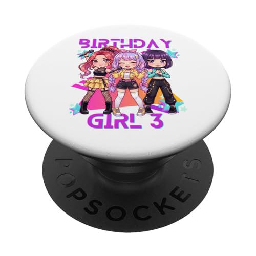 Funny Chibi Kpop Girl It's My 3rd Birthday PopSockets PopGrip Adhésif