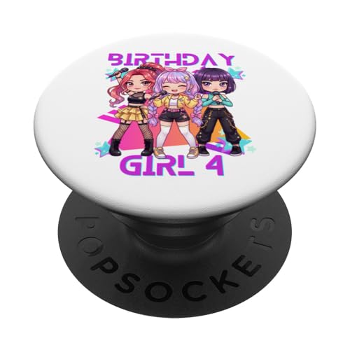 Funny Chibi Kpop Girl It's My 4th Birthday PopSockets PopGrip Adhésif