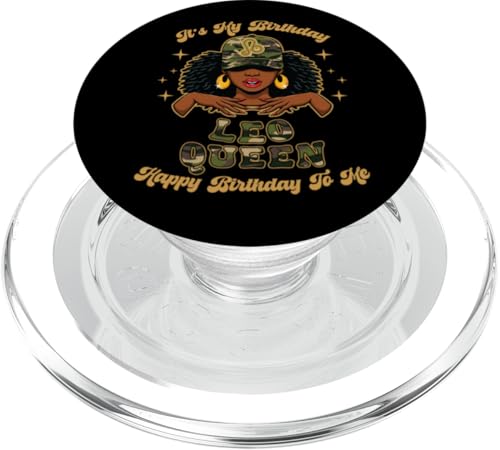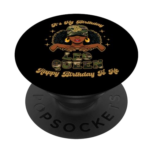 Anniversaire Leo Queen Camo Black Woman African Zodiac Afro PopSockets PopGrip Adhésif