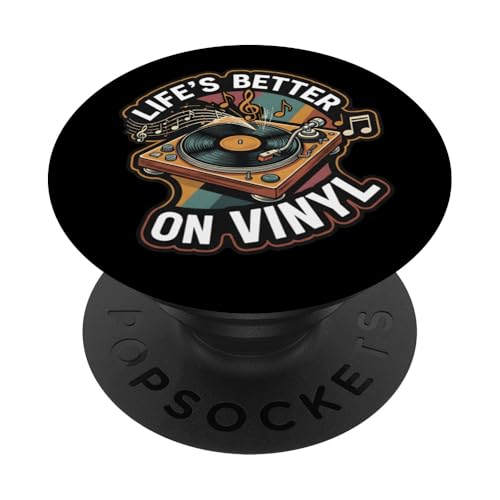 Life's Better on Vinyl Record Player Retro Music Lover PopSockets PopGrip Adhésif