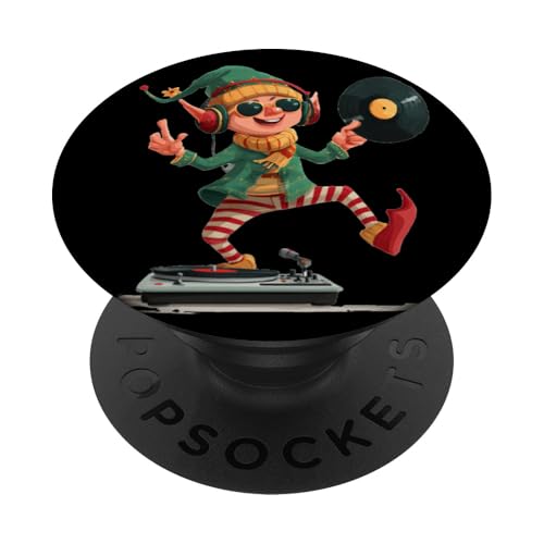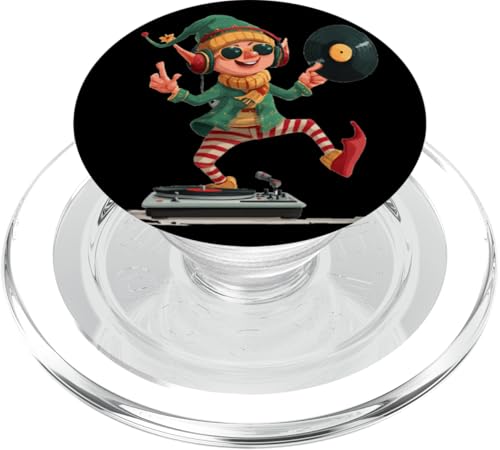 Costume d'elfe DJ Cool avec Cabine et Record pour fête de Noël PopSockets PopGrip Adhésif