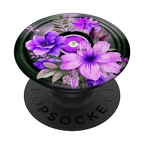 Record Player LP Music Themed Pressed Flower Purple Floral PopSockets PopGrip Adhésif