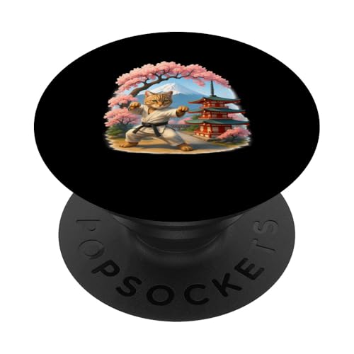 Karaté Kitty Arts Martiaux Chat au Japon Sakura Mountain Fuji PopSockets PopGrip Adhésif
